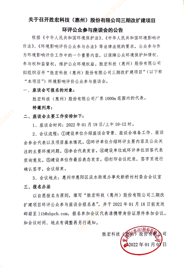 关于召开乐玩网页版三期改扩建项目环评公众参与座谈会的公告